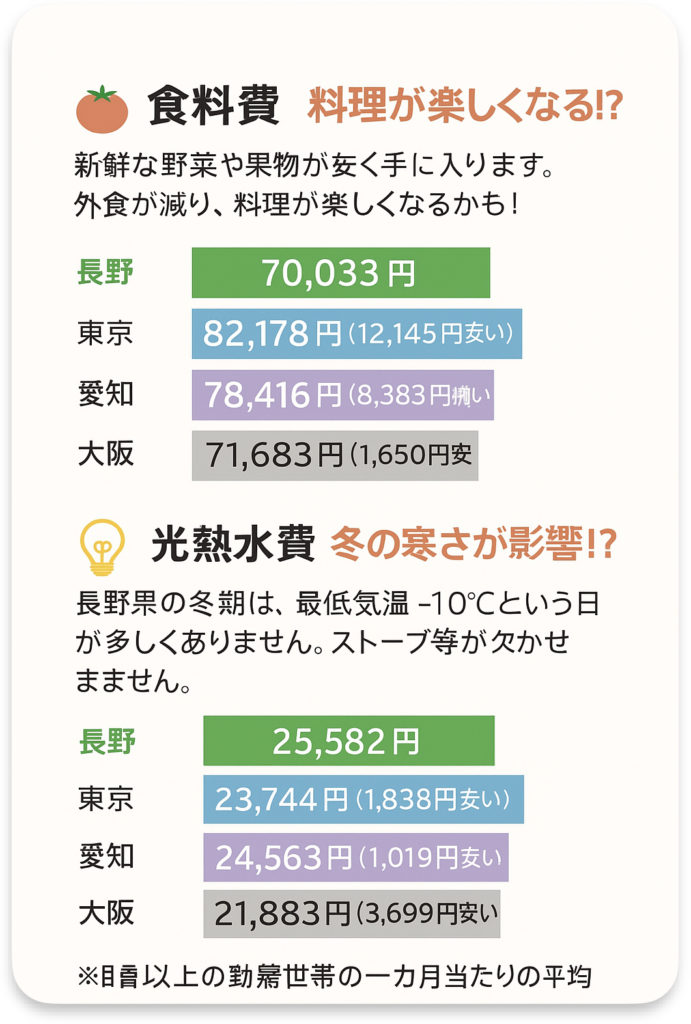 長野県の場合は、食費は下がるけど、光熱費は高くなりそうですね!